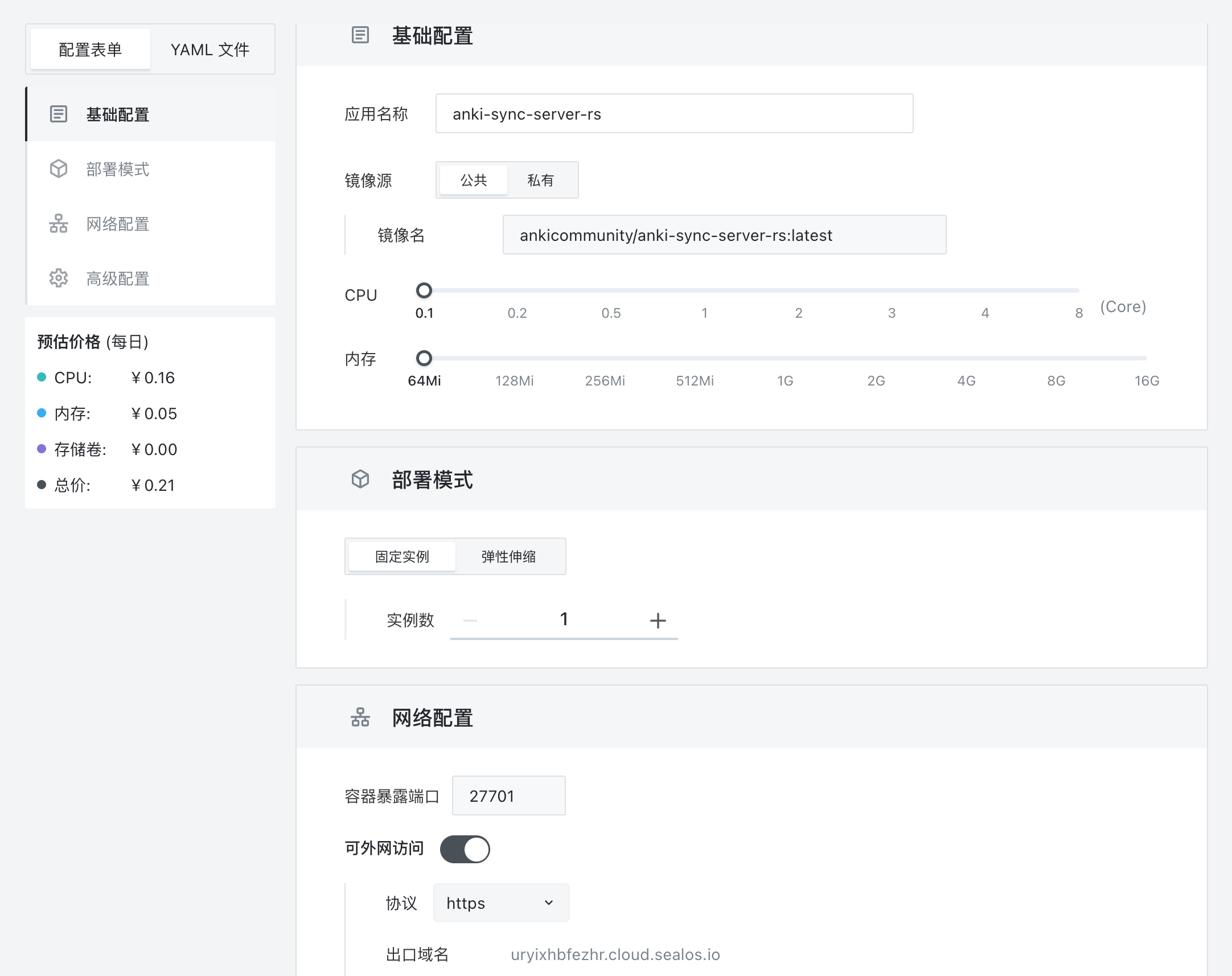 Below we will deploy anki-sync-server-rs on Sealos and configure it.