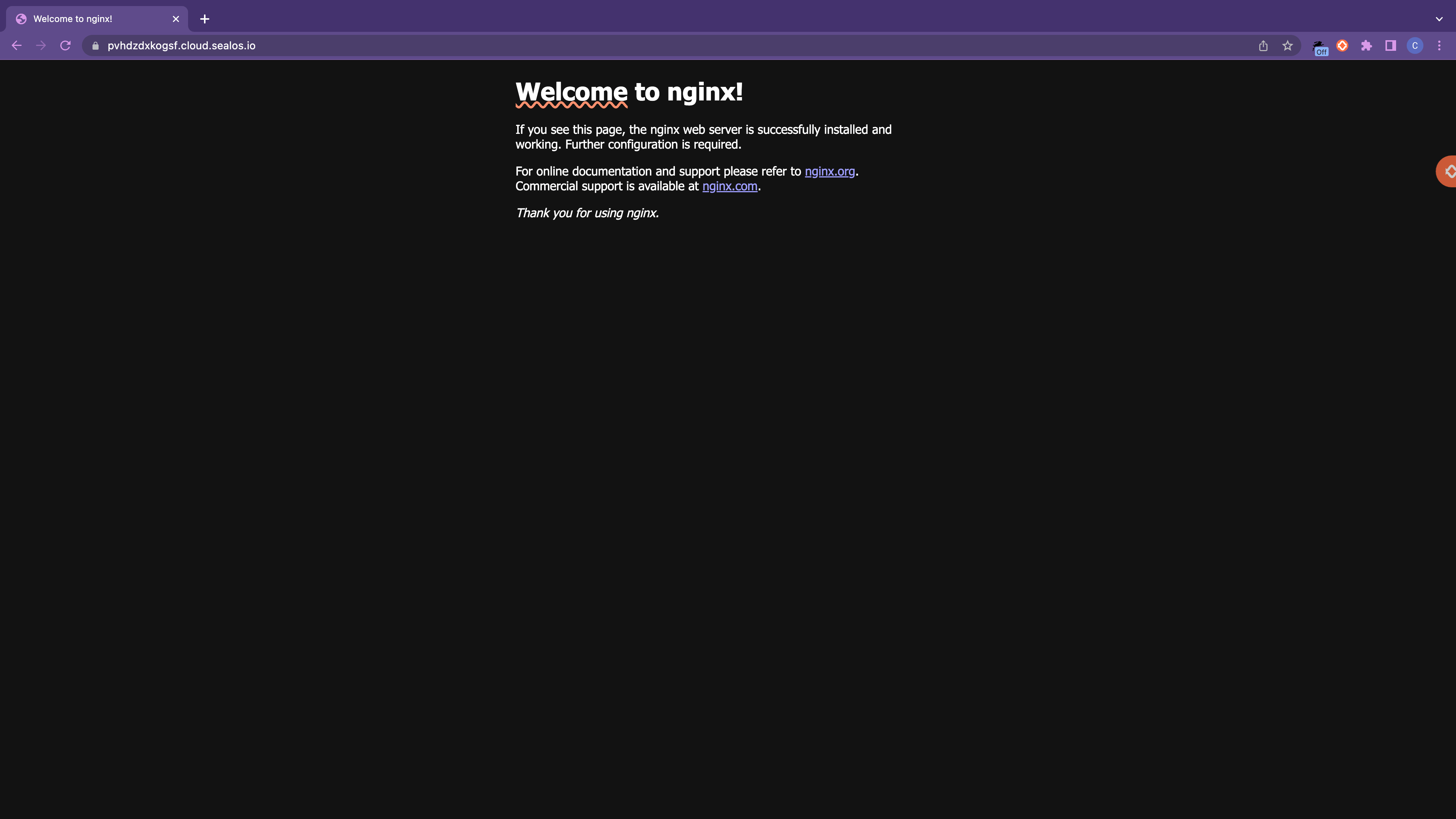 you can view the operational metrics of the Nginx application, including CPU and memory usage. Click on the external link to open the Nginx interface directly via the external domain name.