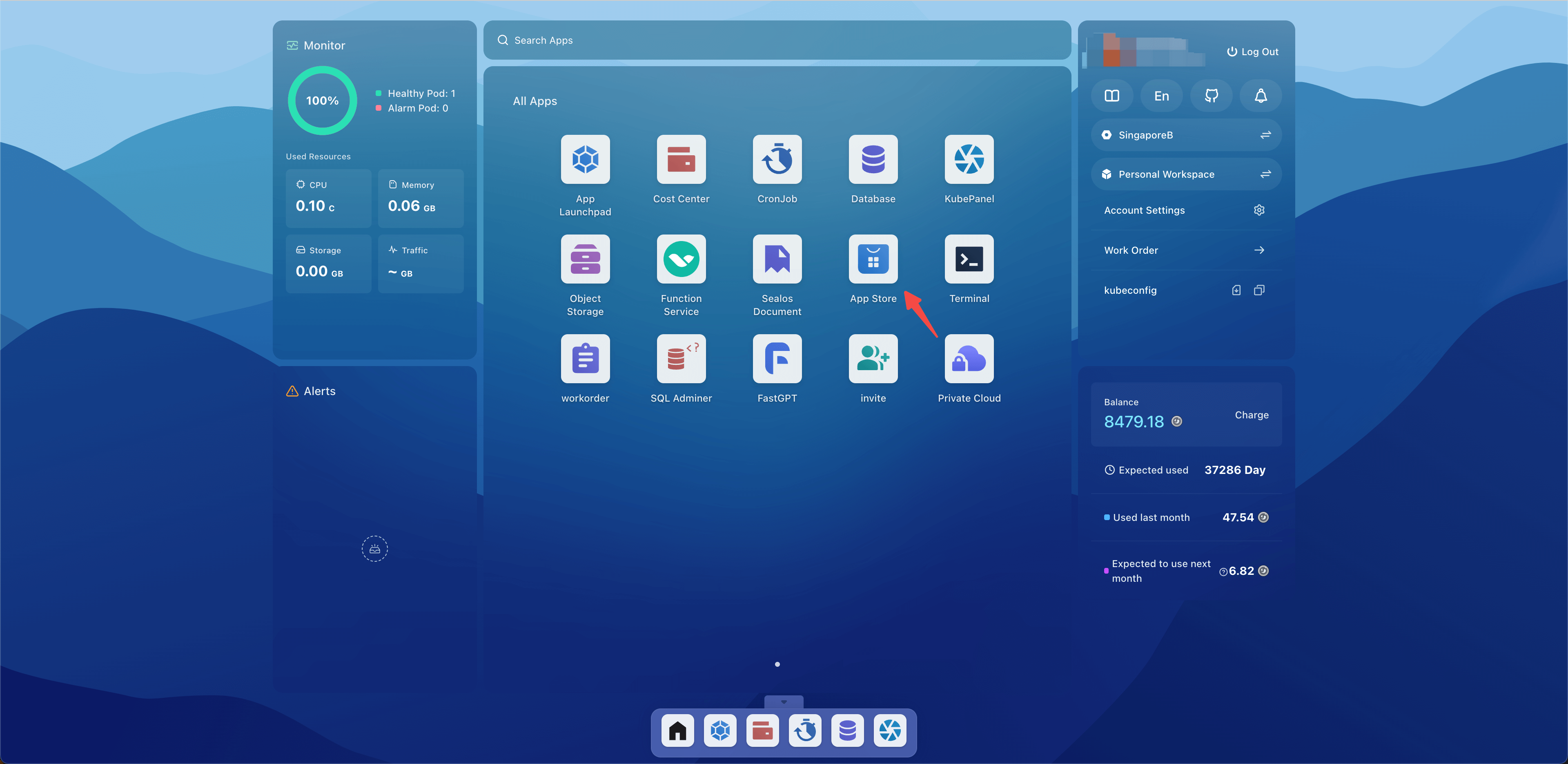 Open the Sealos desktop and click App Store.