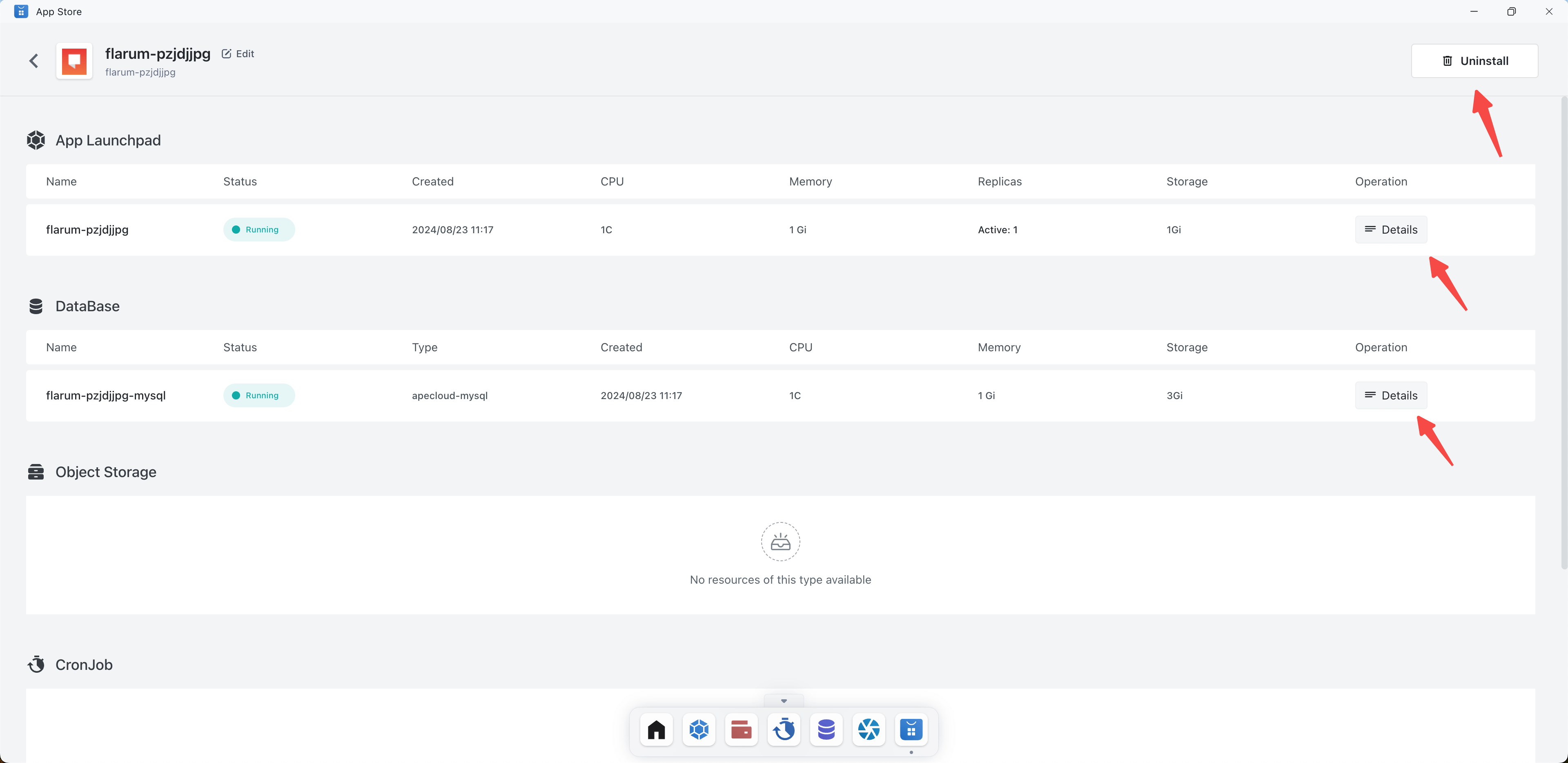 Click on the corresponding application to see the detailed information of the application. It also supports uninstalling the application. (Note: Apps deployed from the app store need to uninstall the app from the app store to completely uninstall the app)