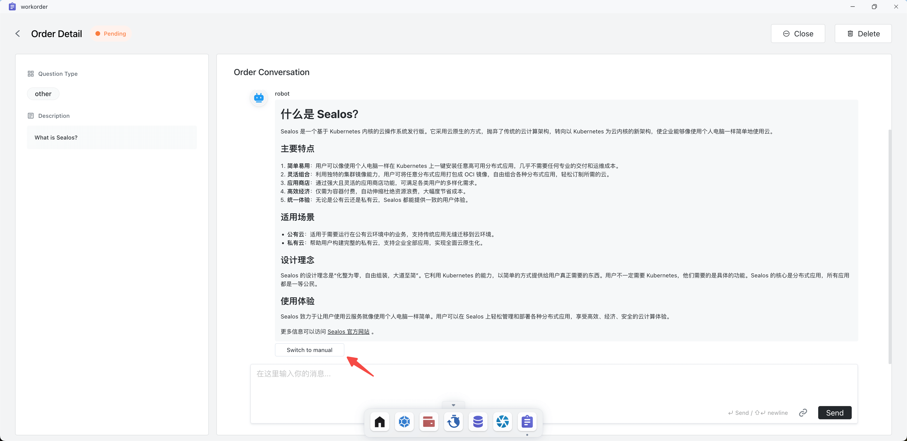 If you encounter any issues while using Sealos, you can use the Work Order to submit your questions and feedback. We will address them as soon as possible.