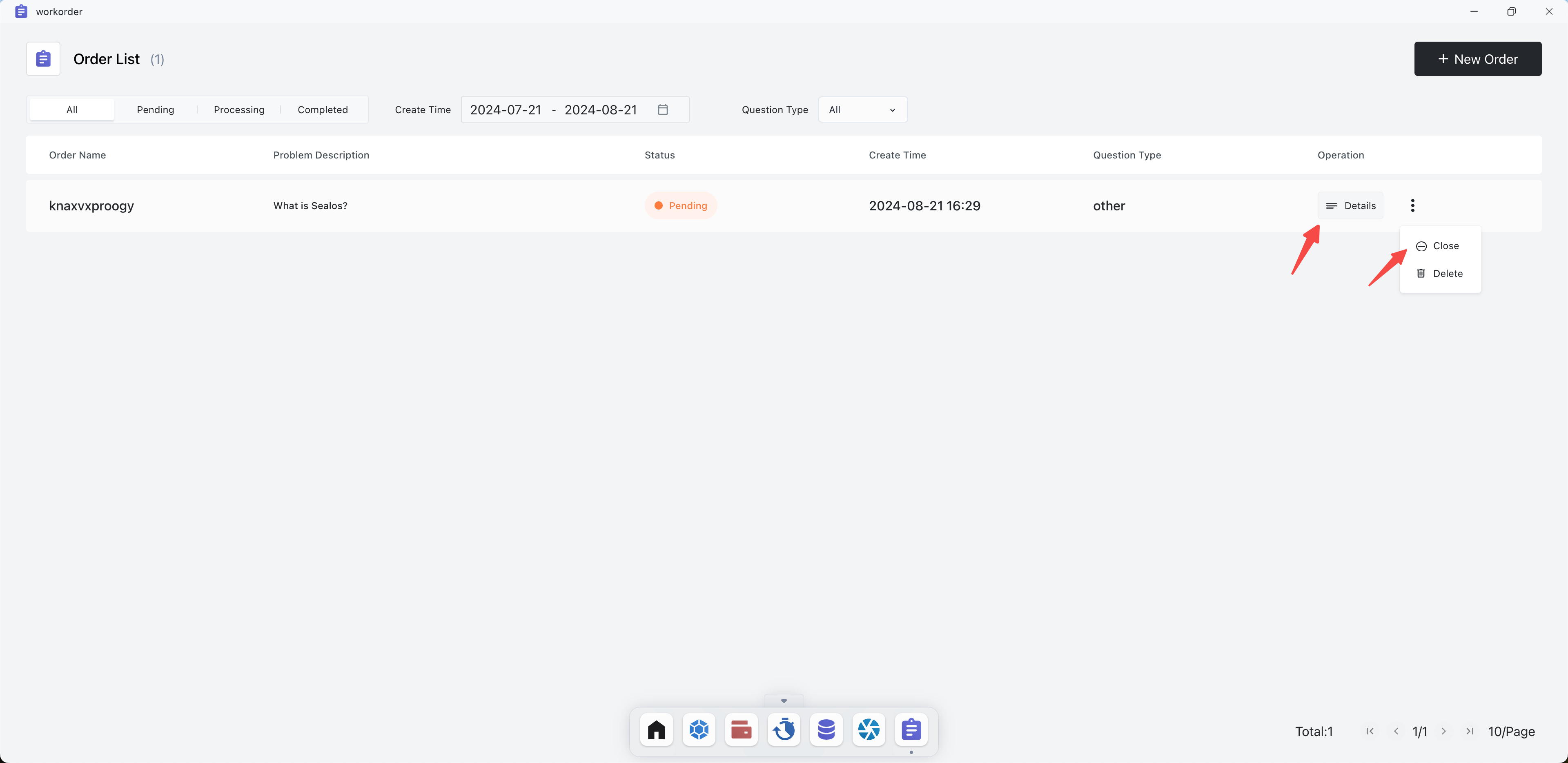 Open the Sealos desktop and click on Work Order.