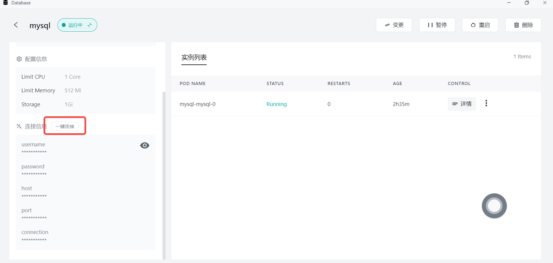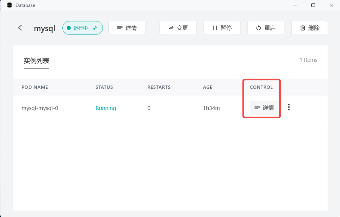When installing a MySQL instance through the Database application, user-defined databases are not automatically created. When connecting an application to the MySQL database, you need to manually create the corresponding database in the MySQL instance.