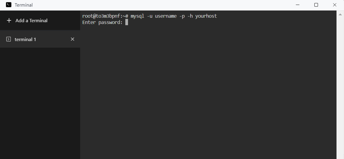 mysql -u username -p -h yourhost
