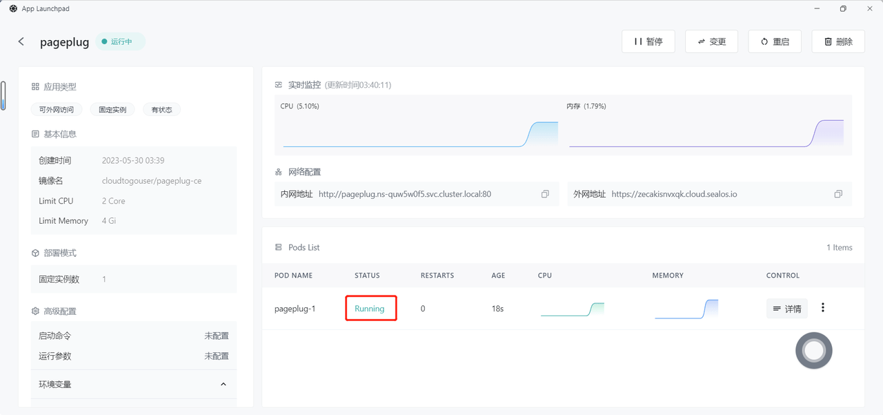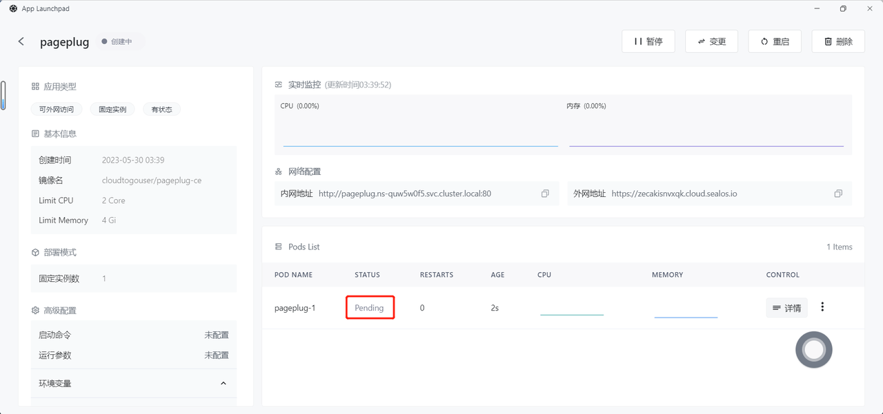 - Click "details" to view, when the STATUS of the application has changed from Pending to Running, it indicates that the application has been launched successfully.