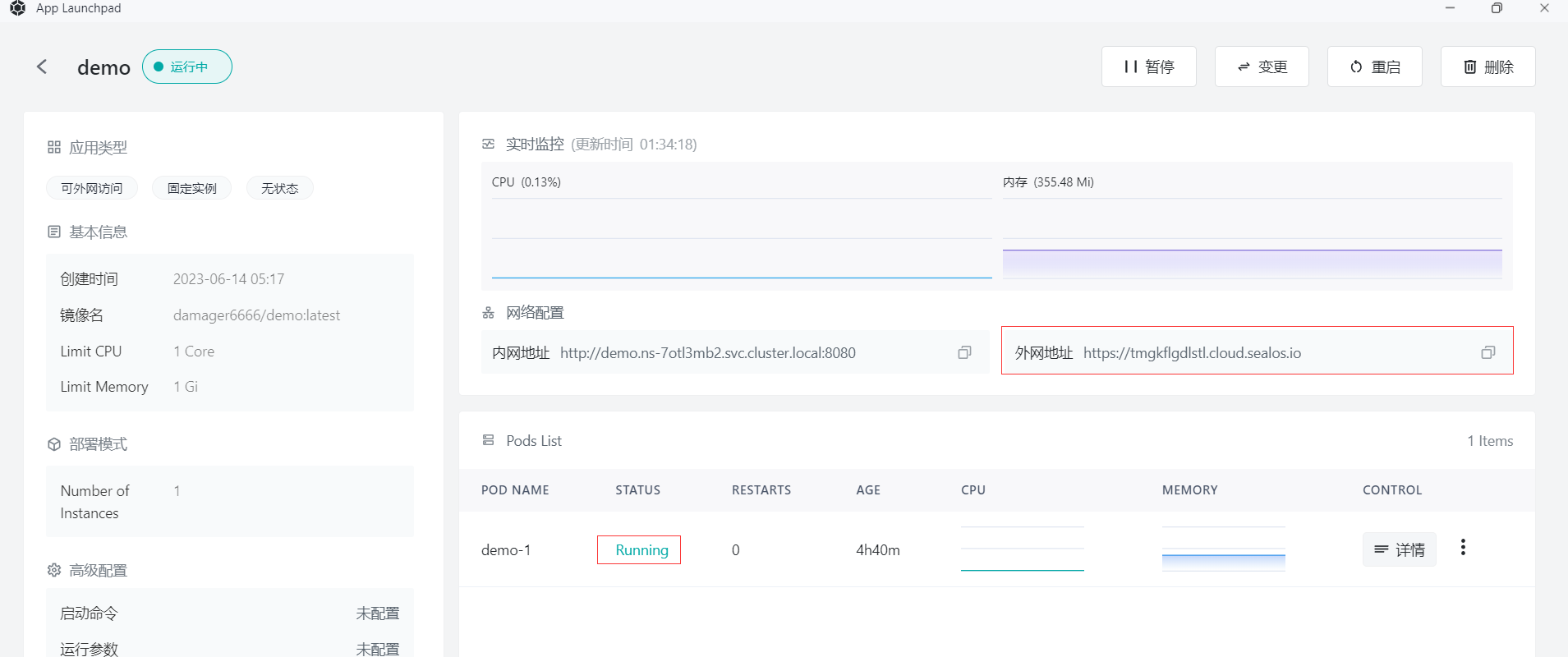 • Click "App Launchpad" to view the application status. When the STATUS changes from Pending to Running, it means that the application has been successfully launched.