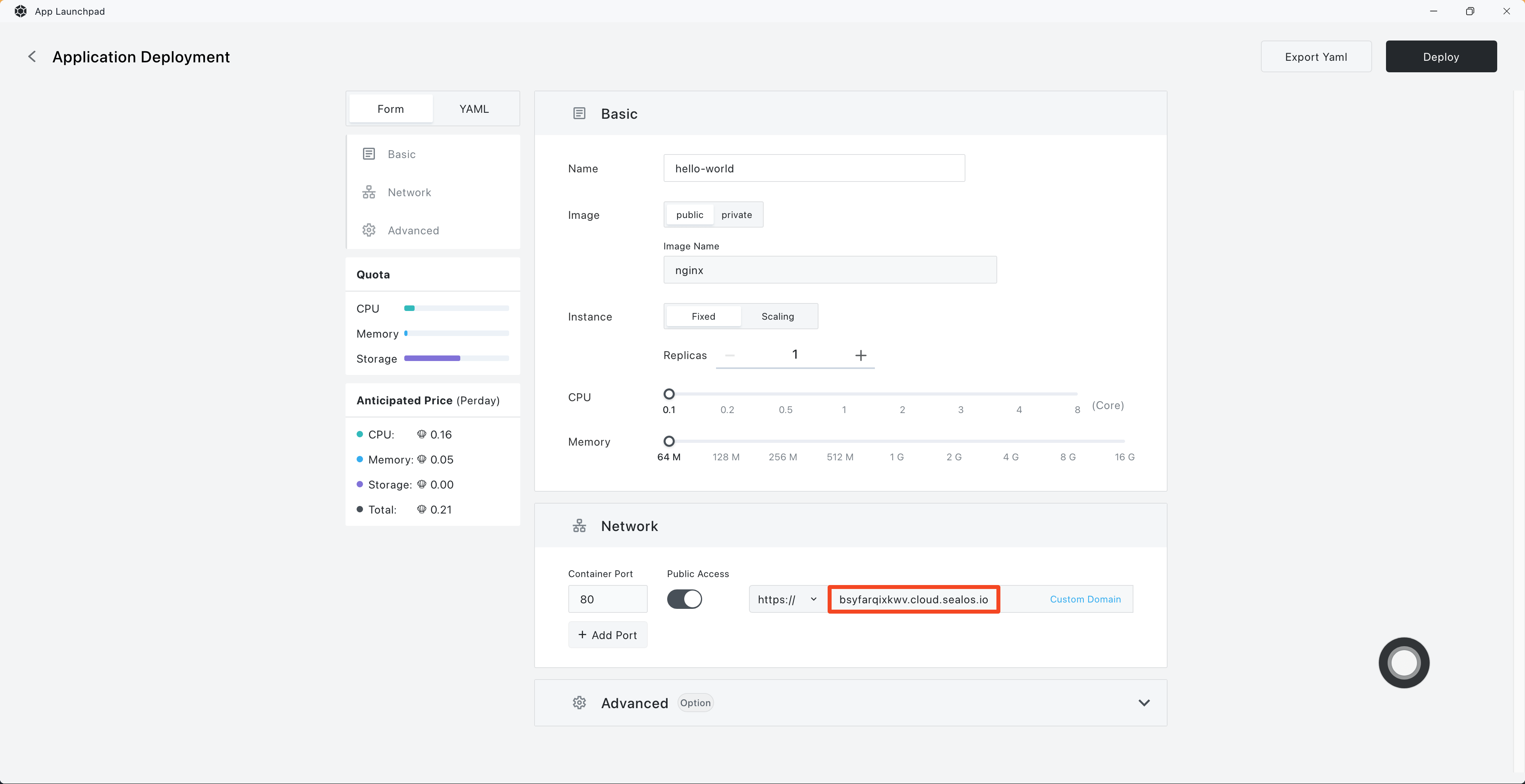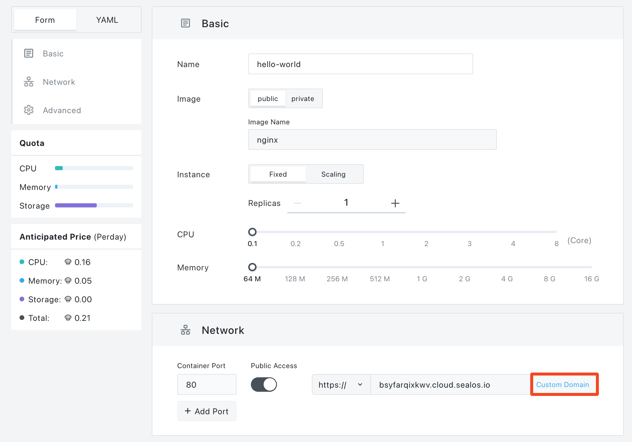 Just enable "Public Access" when you're deploying, and Sealos will sorts you out with a domain.