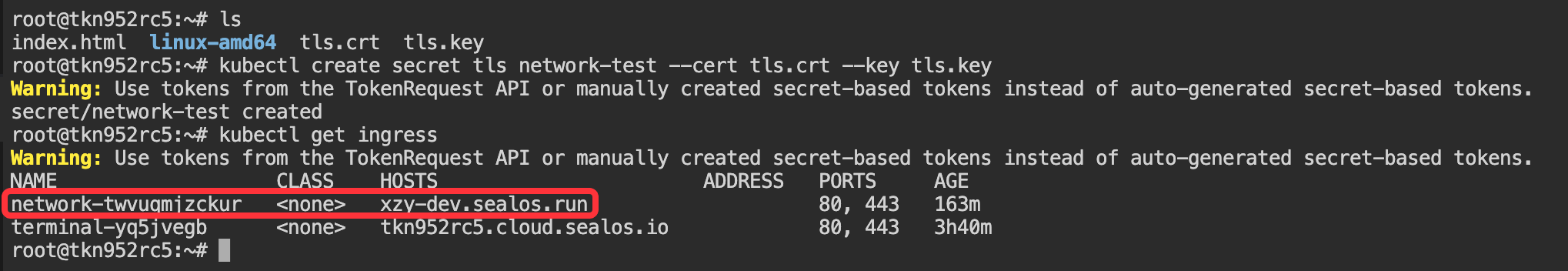 kubectl create secret tls network-test --cert tls.crt --key tls.key