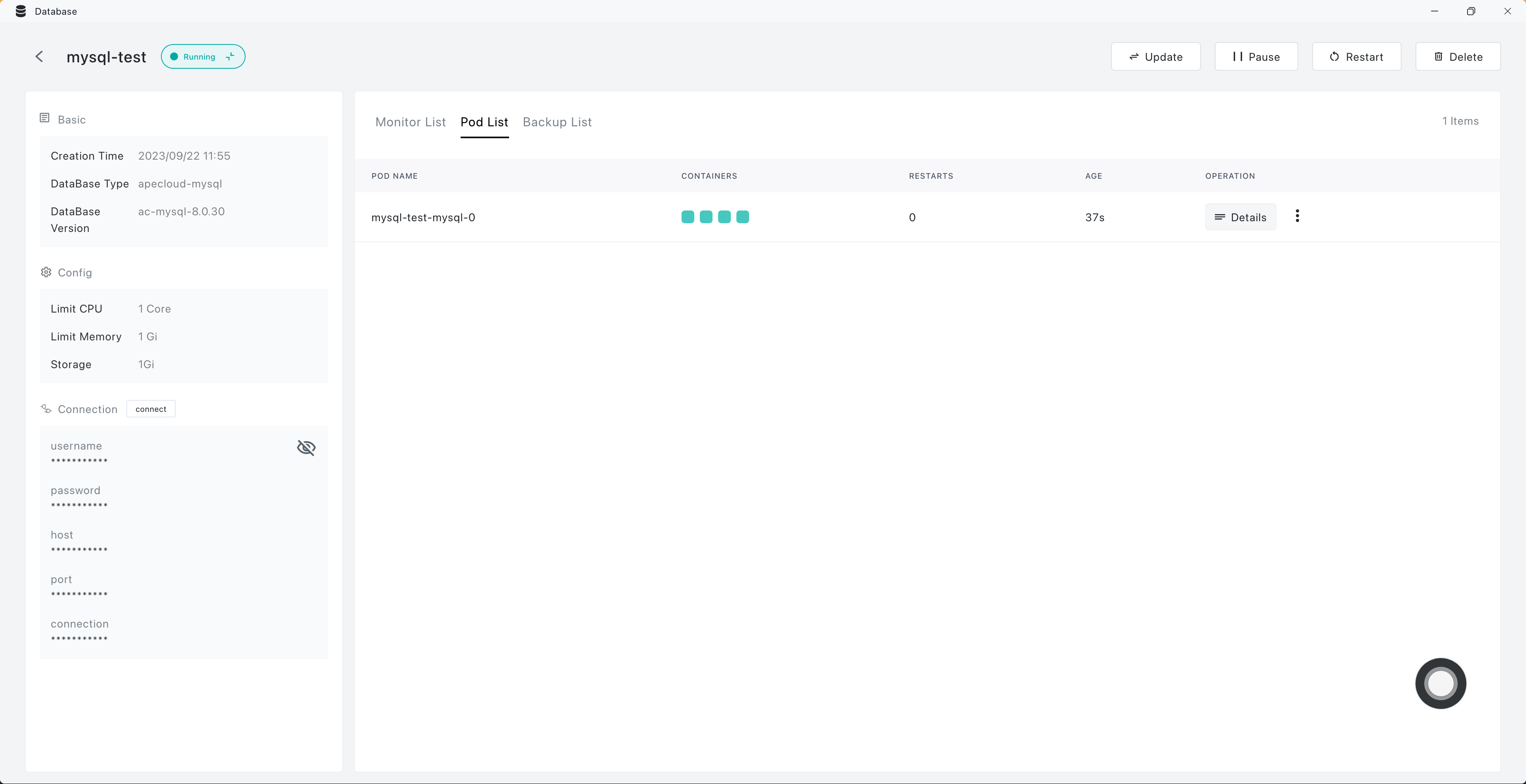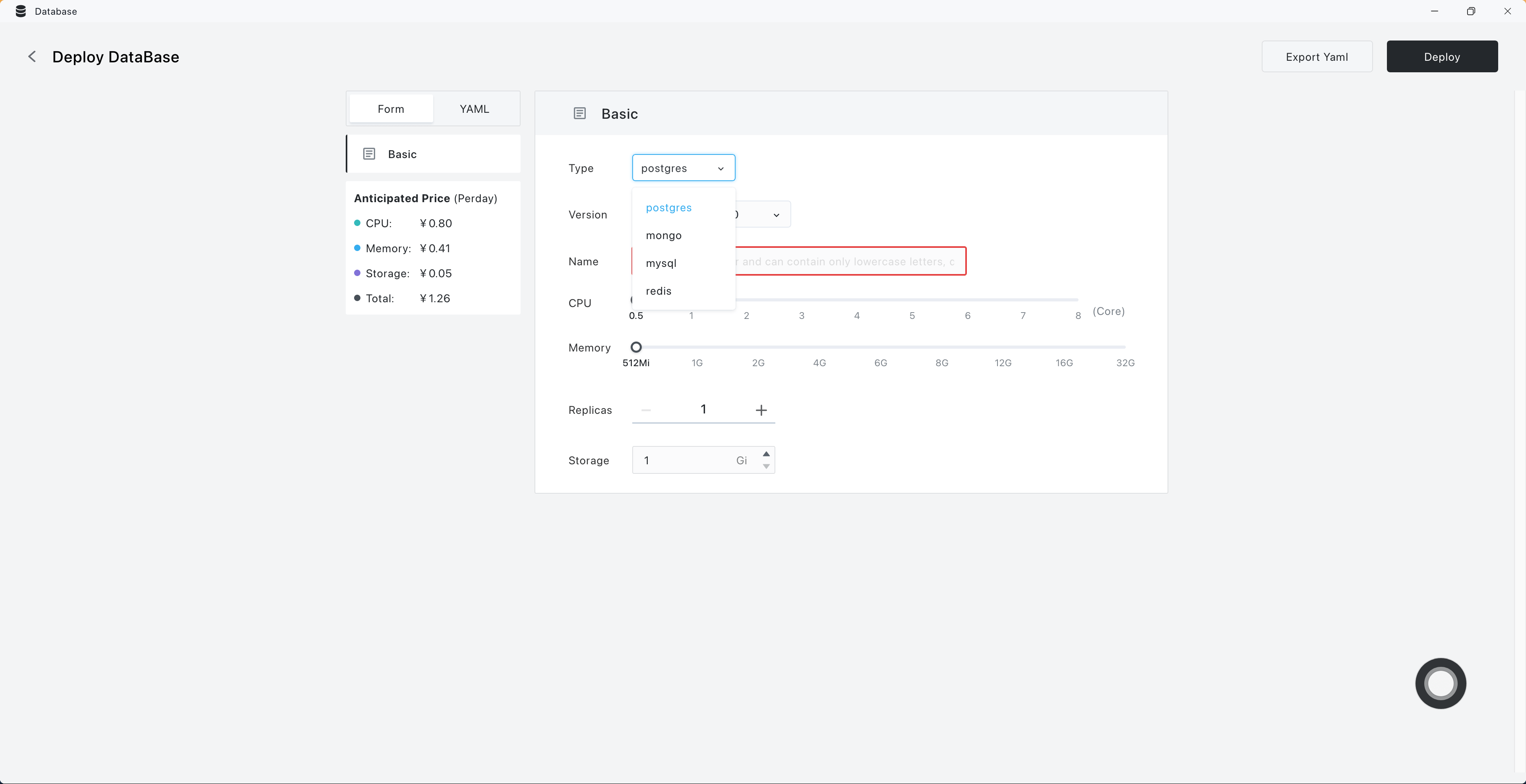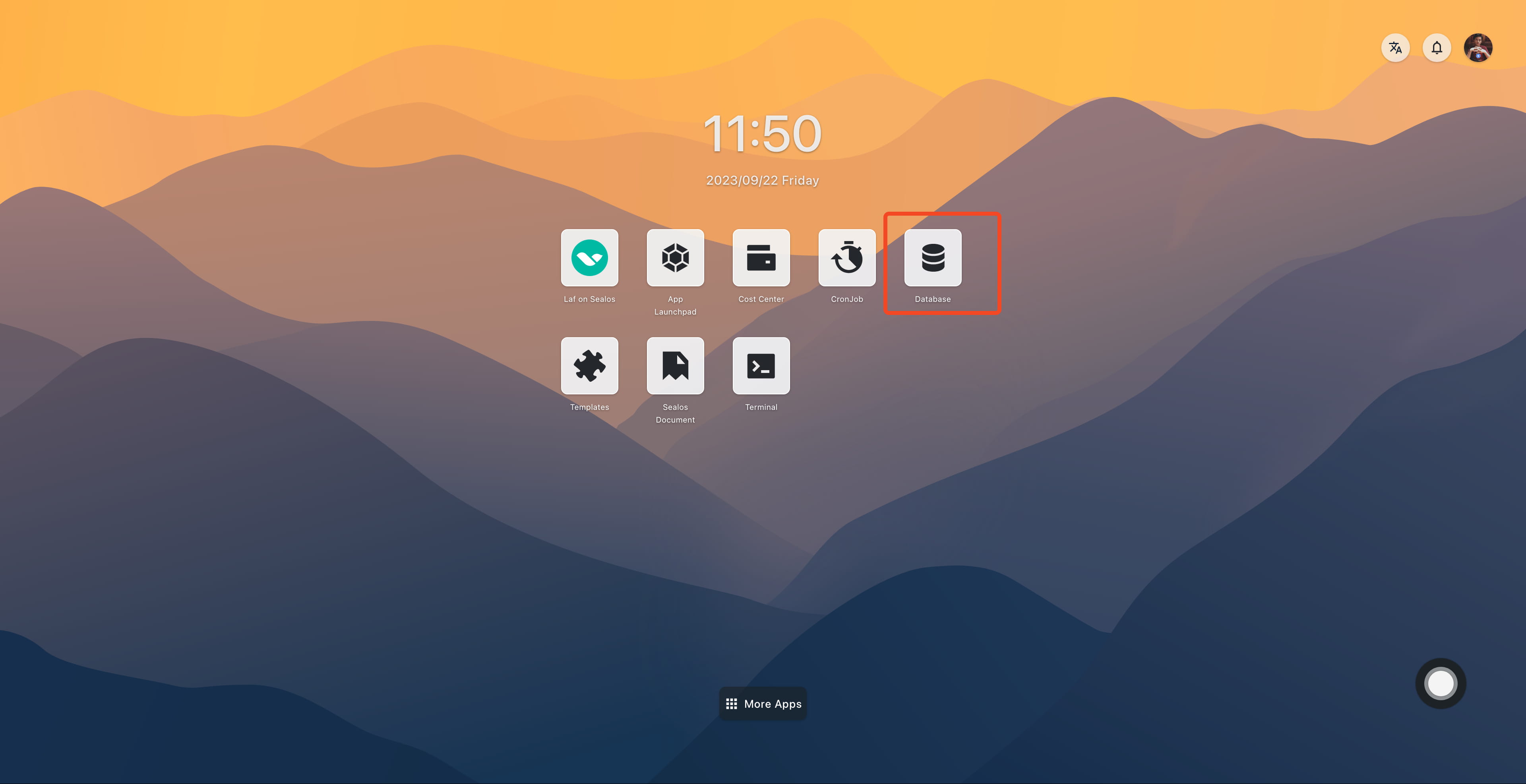- Open Database app in the Sealos desktop.