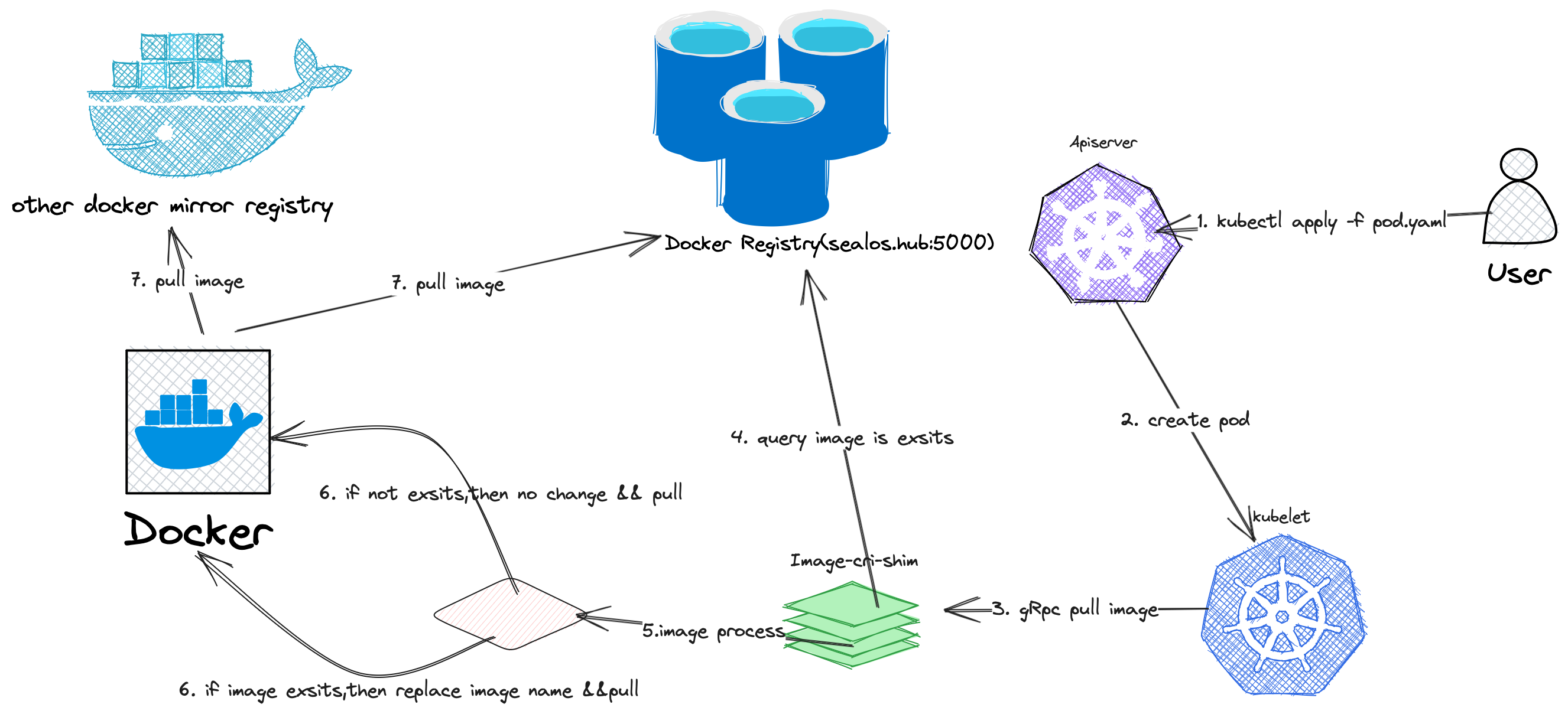 | User | | Kubelet | | image-cri-shim |